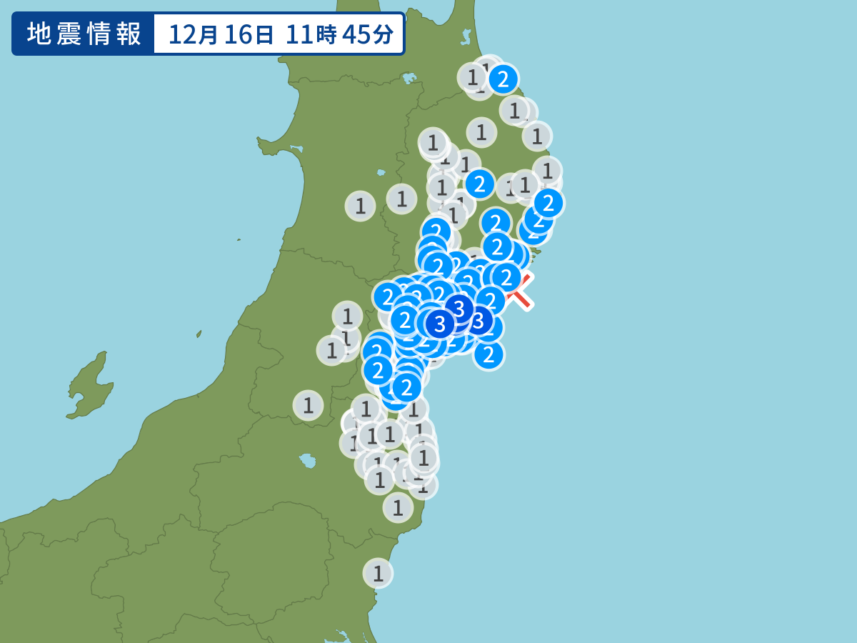 2025年12月16日 11時45分 奥州市で揺れを感じる地震が発生しました。