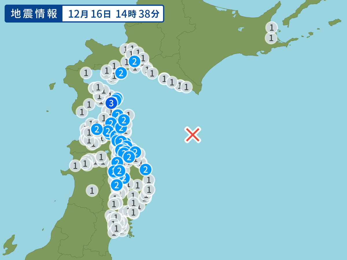 2025年12月16日 14時38分 奥州市で揺れを感じる地震が発生しました。