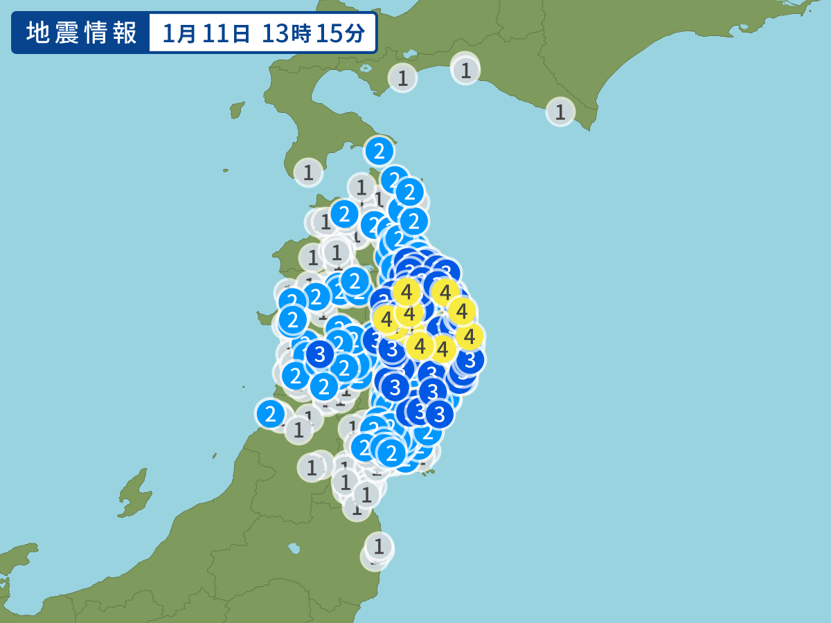 2026年01月11日 13時15分 奥州市で揺れを感じる地震が発生しました。