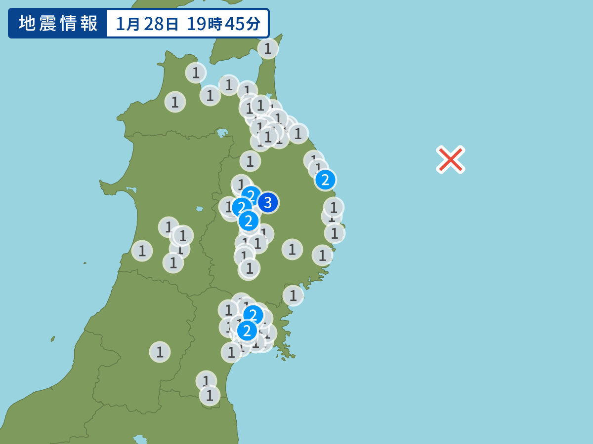 2026年01月28日 19時45分 奥州市で揺れを感じる地震が発生しました。