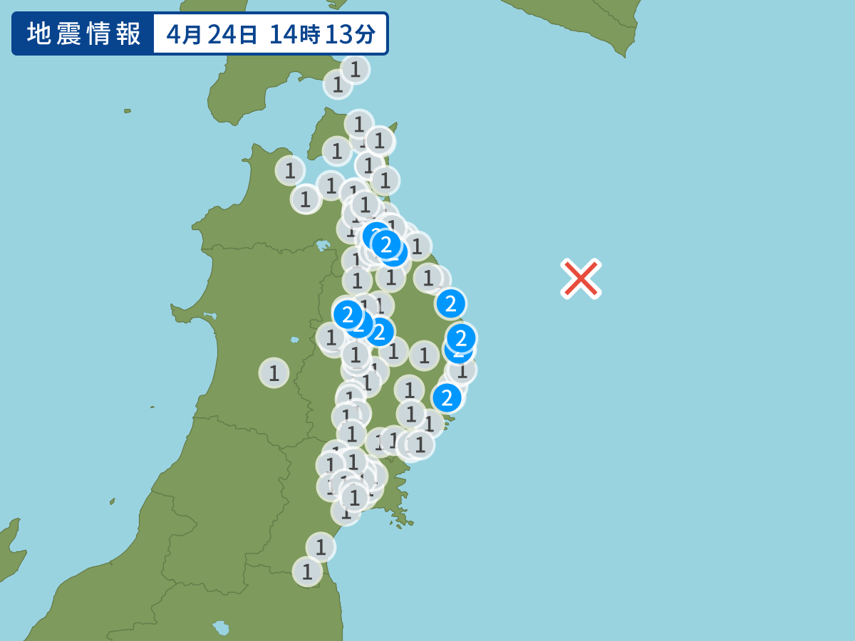 2026年04月24日 14時13分 奥州市で揺れを感じる地震が発生しました。